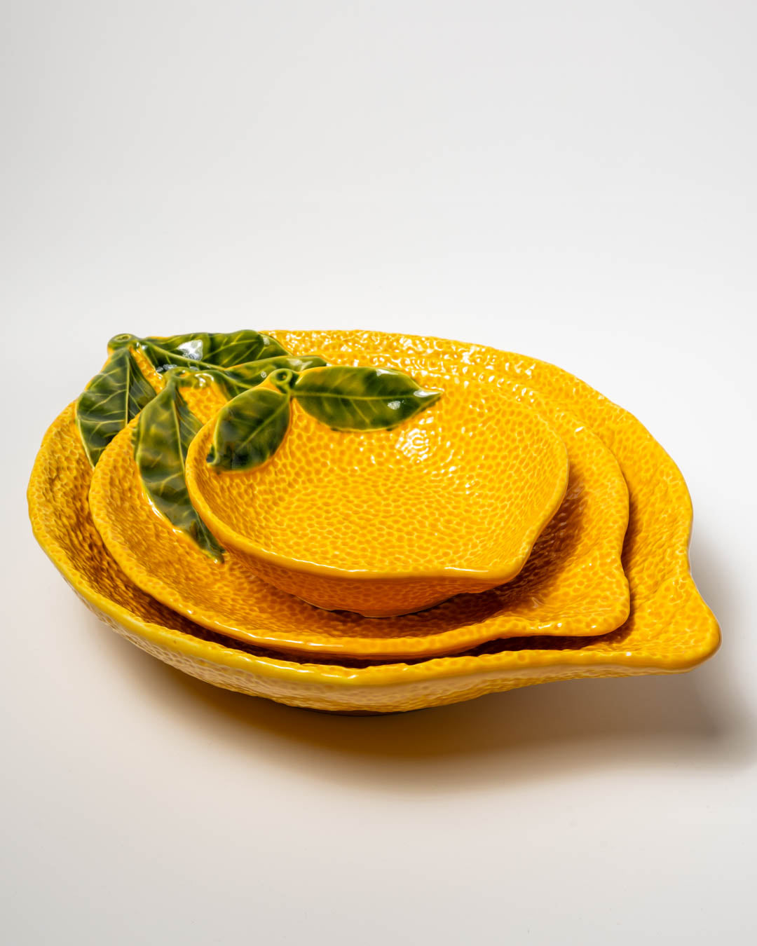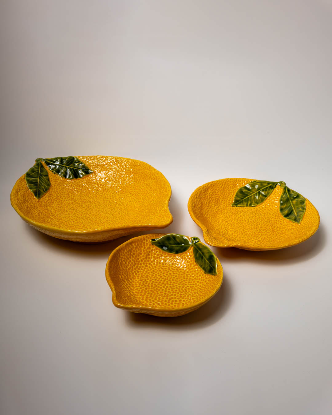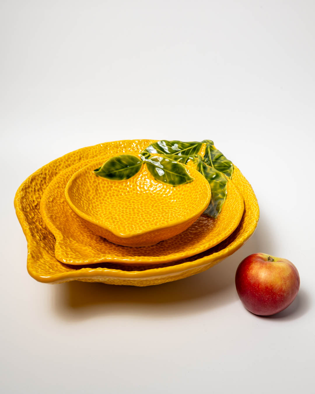 Handmade ceramic bowl from Portugal in a citrus shape.