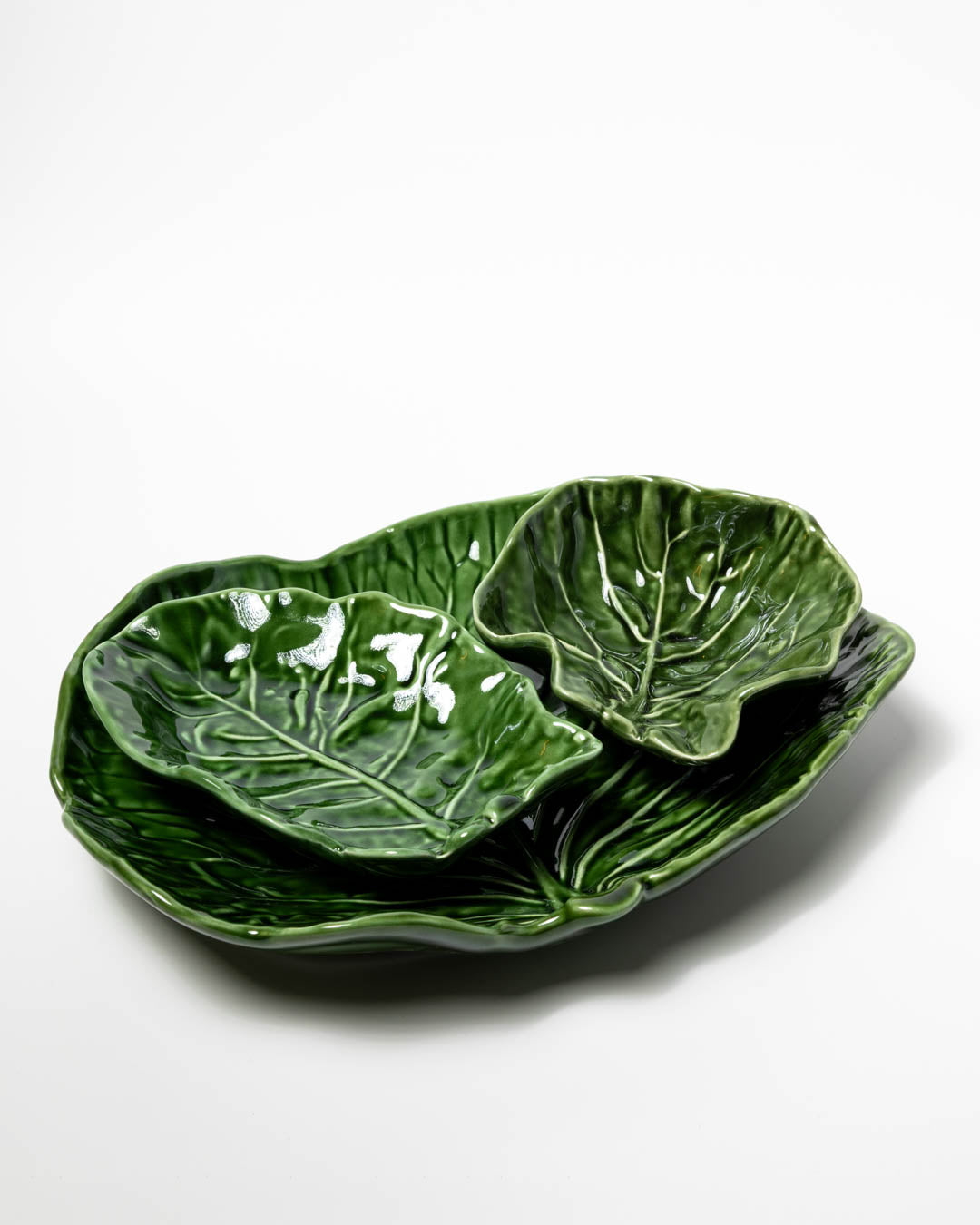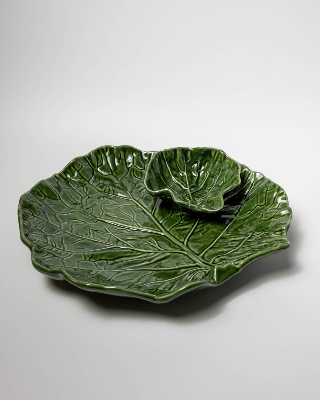 Stort keramik fad inspireret af kålblade og håndlavet i Portugal.
